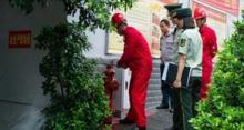 1、由于地下消防栓上蓋著厚重的井蓋板,打開時一般由兩個人用鐵制的專用工具勾起井蓋板,露出地下消防栓后再用加長的開關(guān)扳手深入到